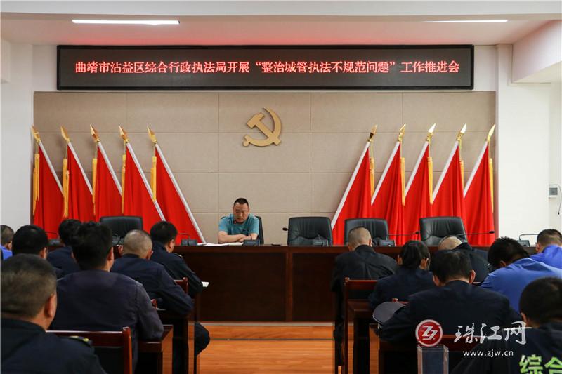 沾益区综合行政执法局领导传达学习了《曲靖市开展“整治城管执法不规范问题”工作方案》,并对工作方案进行了解读,要求大家必须深刻领会城管执法不规范问题的严重后果及其带来的危害,切实提升整改工作的责任感和紧迫感。各科室、部门要按照工作方案,严格执行行政执法“三项制度”,整治着装用语不规范、程序违法、法律适用错误等问题。建立案卷评查机制,严查选择性执法、罚款截留、吃拿卡要等行为。要进一步落实“城市管理进社区”,解决占道经营、停车秩序等民生问题。同时,还要持续加强执法人员的培训与教育工作,不断提升法律素养水平,强化服务意识和群众观念,确保执法行为文明、规范。