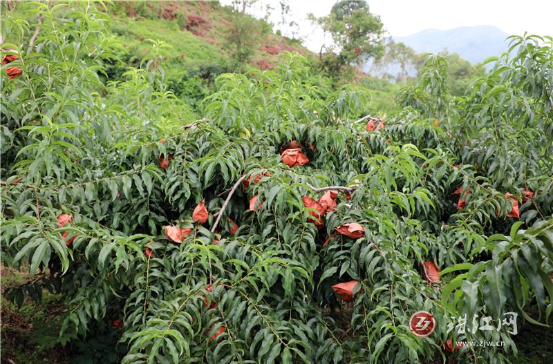 岔江黄桃生态基地负责人高维顺告诉记者:“我这个桃园从2019年开始建出来,施的是农家肥,不打农药,品质很好,像这种套袋后就不用打药,也不会被鸟啄。忙的时候要请七八十个工人,大家做着也高兴,苦点零花钱贴补家用,现在我已经带动了周围二三十家人种植黄桃了。”