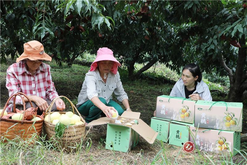 为充分发挥政府的推动作用,钟山乡依托扶贫平台公司,线上、线下销售齐发力,不断拓宽黄桃等水果的销售渠道,帮助果农快销增收,使黄桃成为金灿灿的“致富果”。罗平县红色老区开发投资有限公司负责人张浩说:“我们公司经常安排人到基地把控品质,统筹优化种植技术、深化加工链条、强化品牌建设,拓宽销售渠道,以公司注册商标统一对外销售,让果农安心放心舒心种植,解决群众后顾之忧。”钟山乡聚焦规模化主导产业,推进社会化全程服务,走出来一条特色产业高质量发展之路。