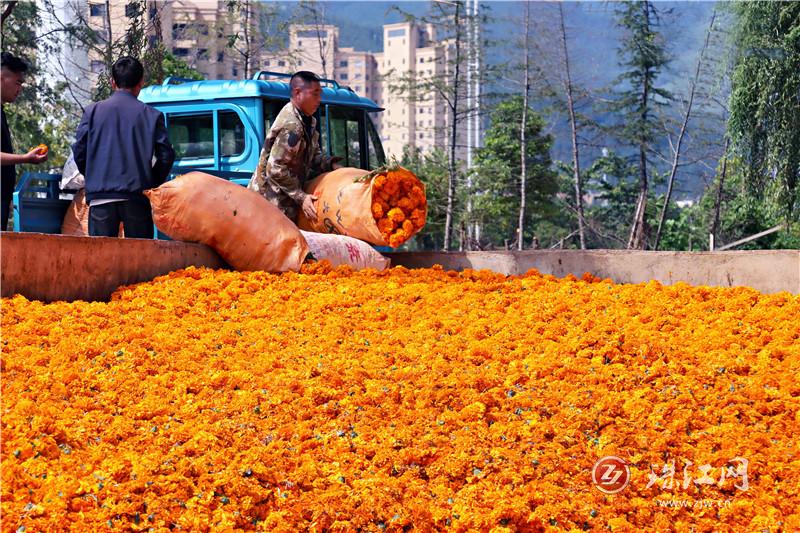 这朵朵看似普通的万寿菊,正悄然在钟屏街道的土地上,编织出一条令人惊叹的“黄金产业链”。