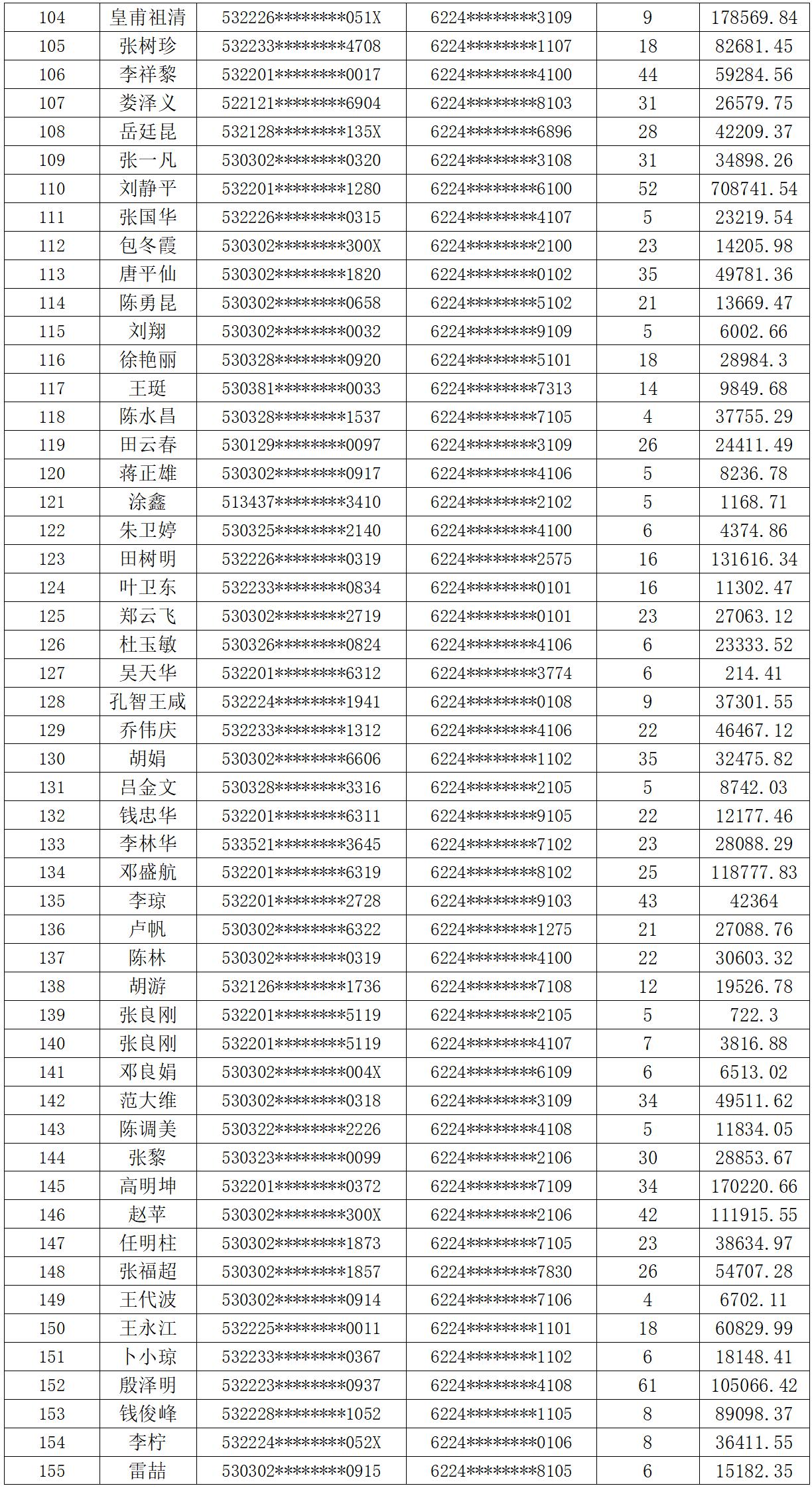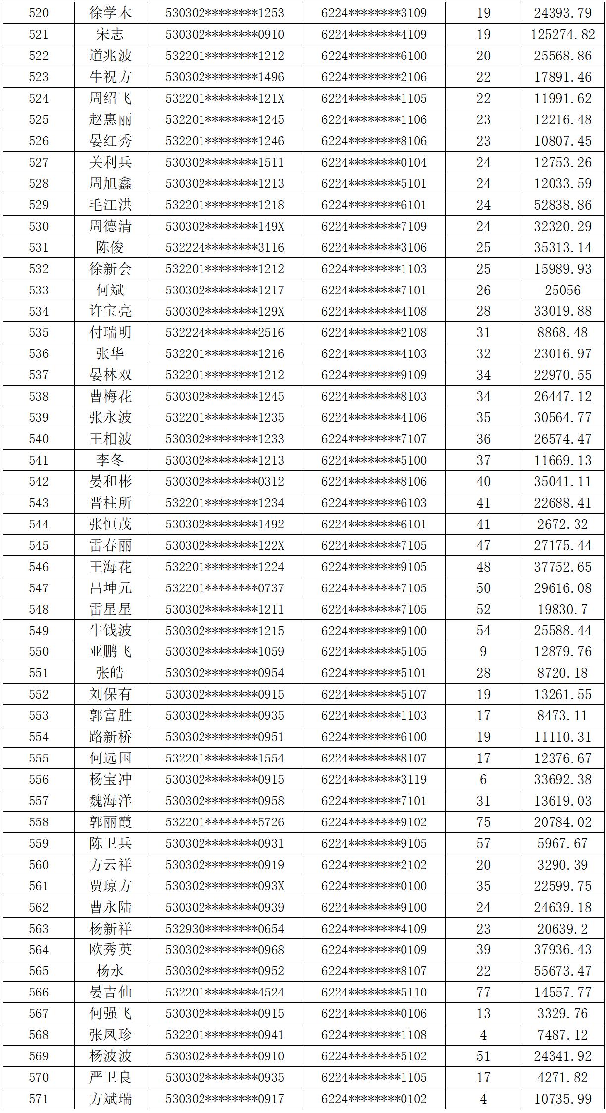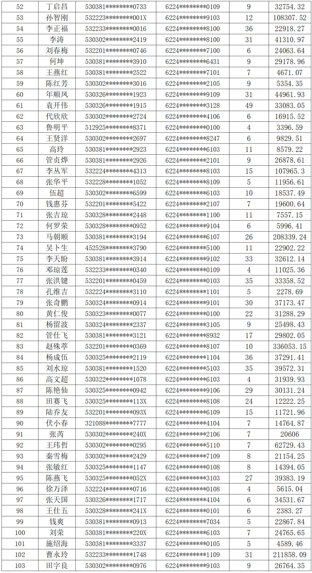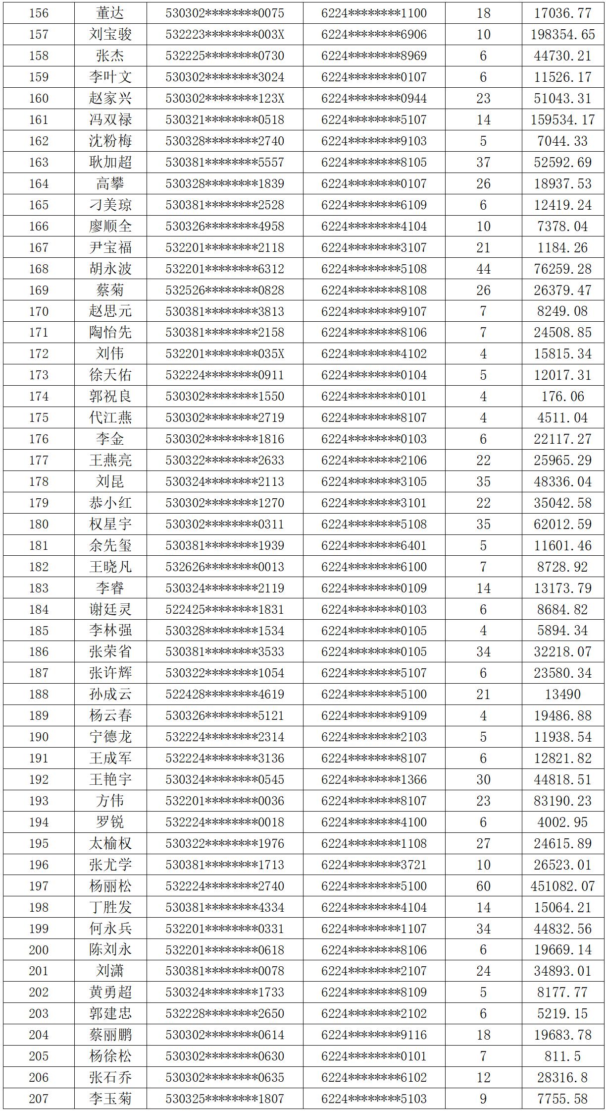 以下人员在曲靖市麒麟区农村信用合作联社办理贷记卡,截止2025年8月17日,已逾期4期(含)以上,具体欠款金额见下表,现予以公告催收。请以下人员自公告之日起15日内,向本社清偿下述逾期债务及公告之日起至实际清偿之日止的逾期债务。对拒不履行者,我社将依据有关规定,向公安机关报案或向人民法院提起诉讼。