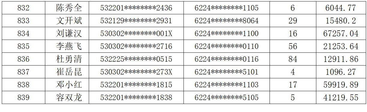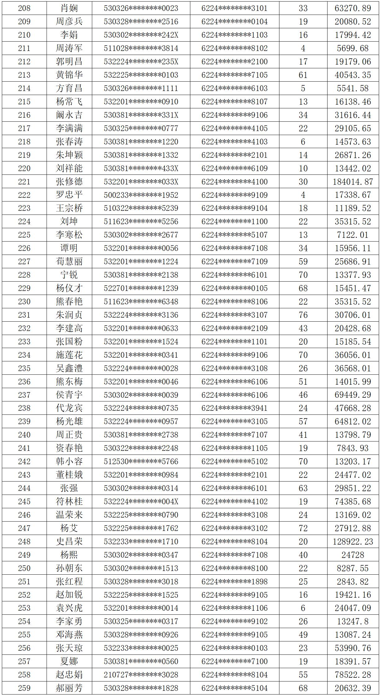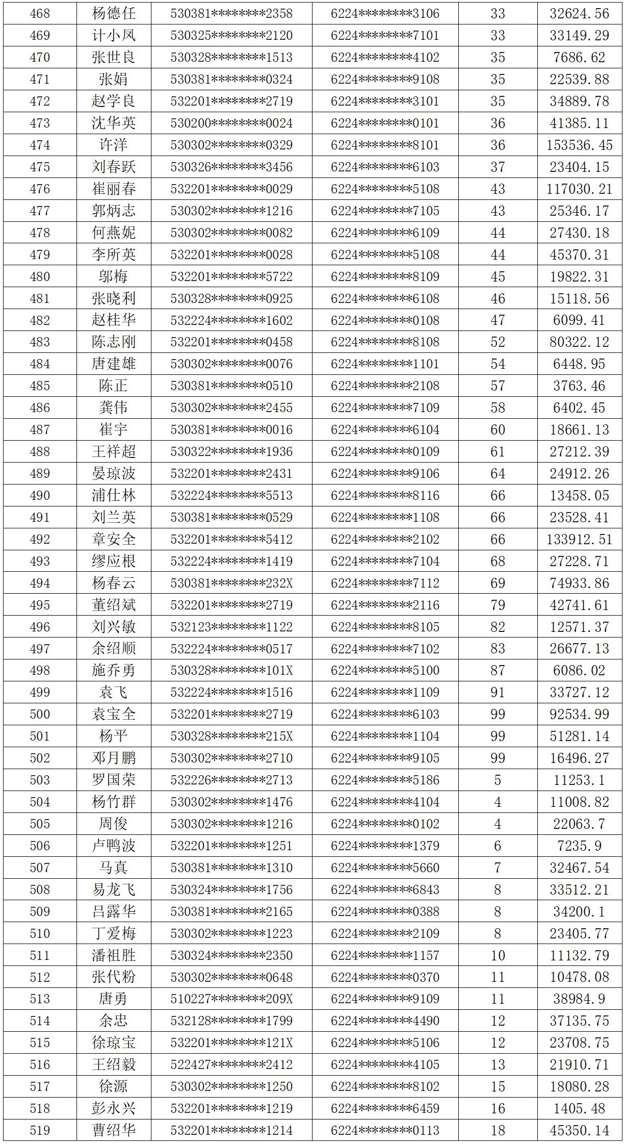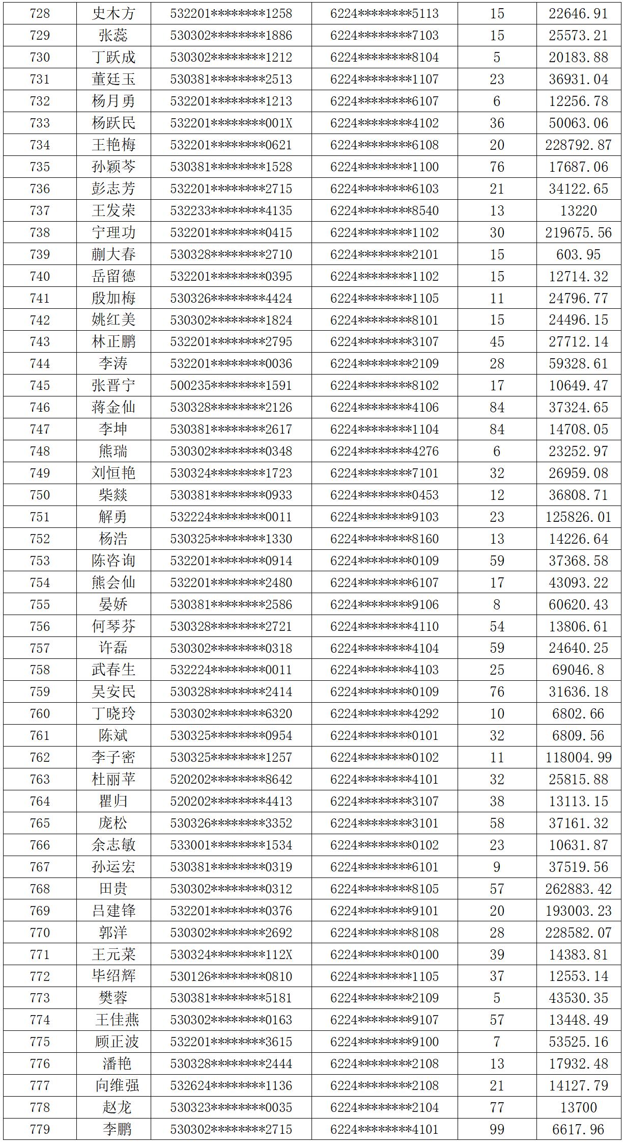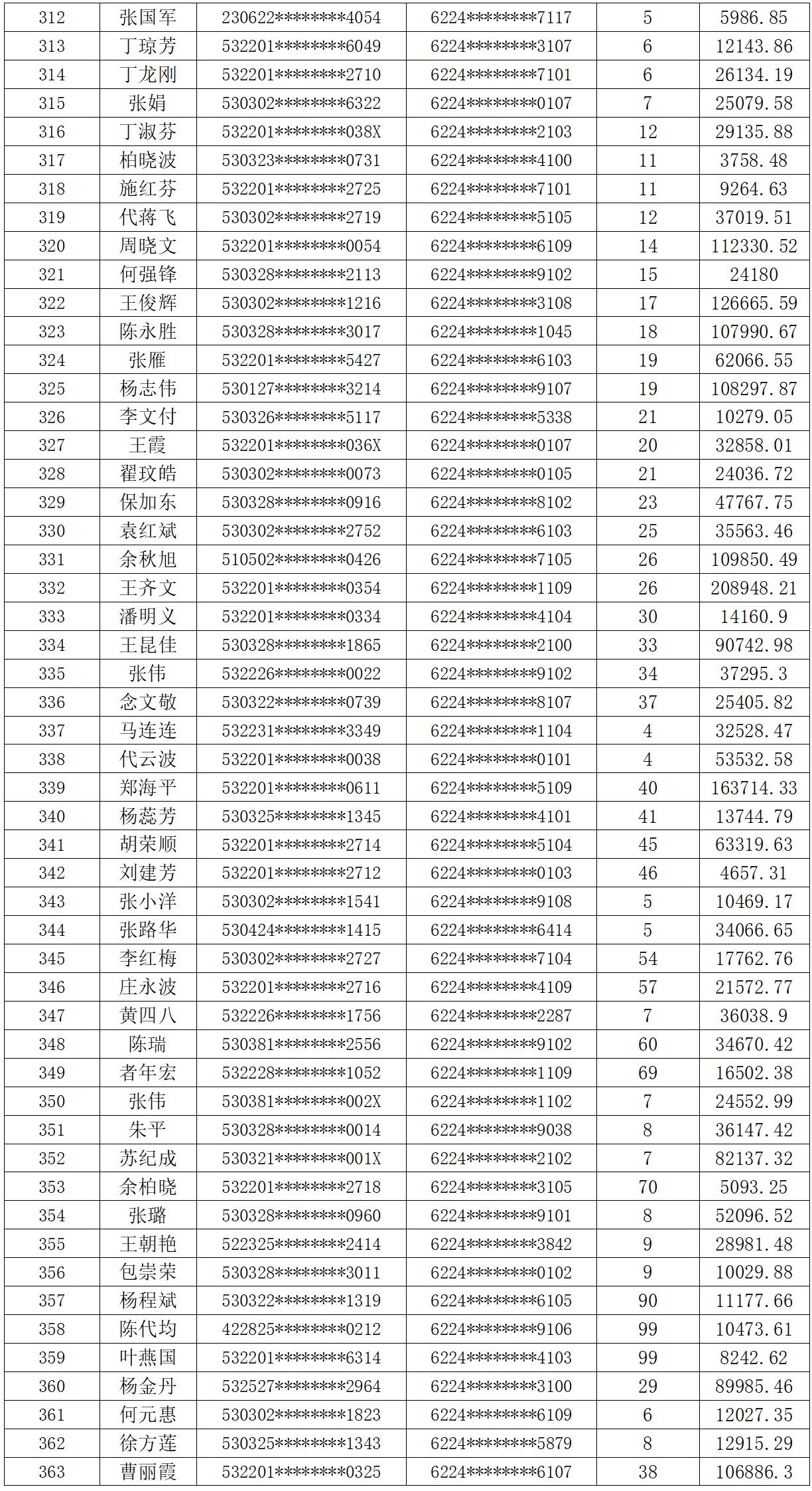 以下人员在曲靖市麒麟区农村信用合作联社办理贷记卡,截止2025年8月17日,已逾期4期(含)以上,具体欠款金额见下表,现予以公告催收。请以下人员自公告之日起15日内,向本社清偿下述逾期债务及公告之日起至实际清偿之日止的逾期债务。对拒不履行者,我社将依据有关规定,向公安机关报案或向人民法院提起诉讼。
