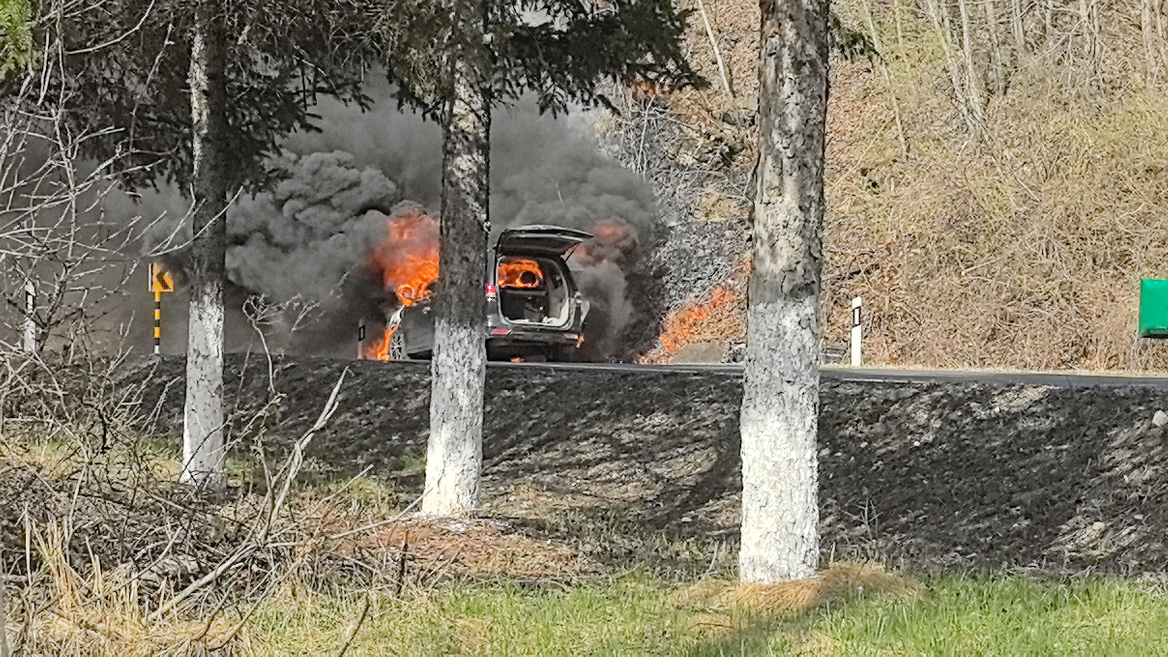 "立即停车救援!"两位消防员异口同声。凭借专业素养,他们迅速判断出这是一起极其危险的车辆自燃事故,随时可能发生爆炸。
